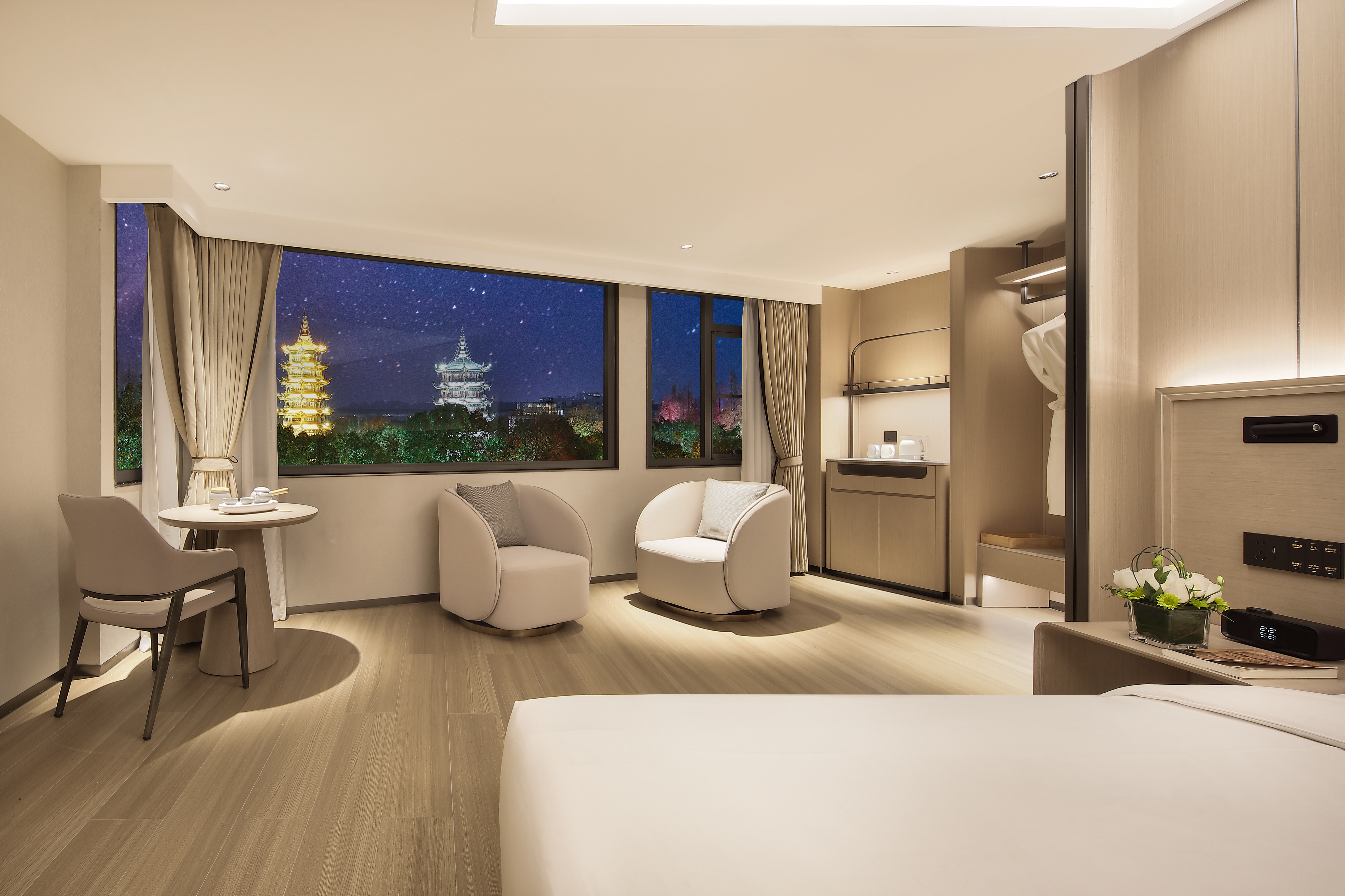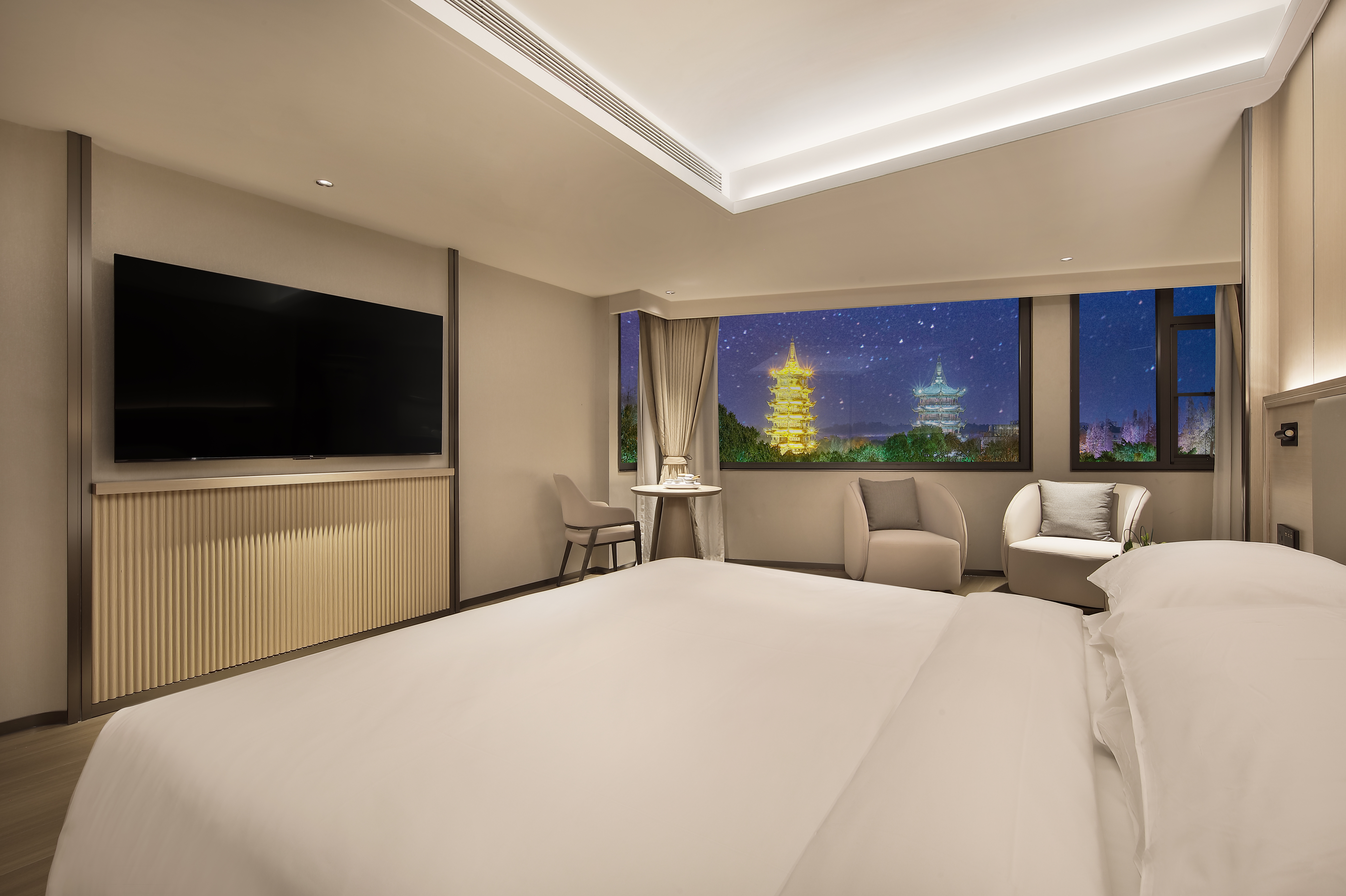 日月双塔观景大床房(全屋语音智控+减压浴缸+65寸电视